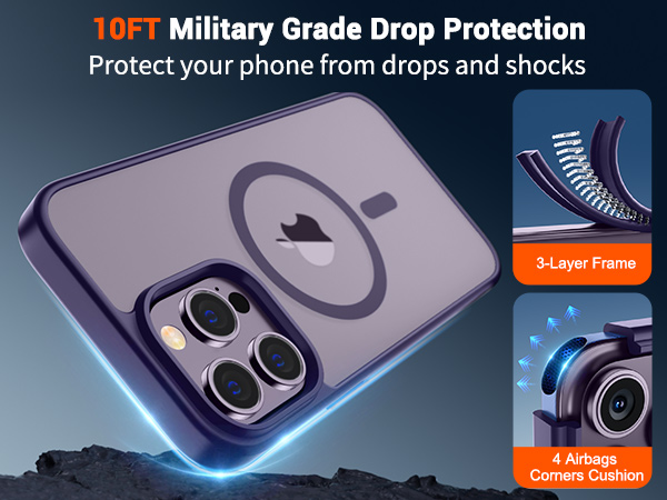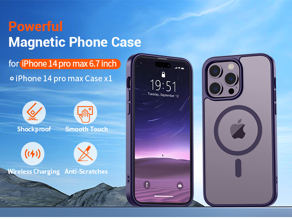 IP14PM-MDP 暗紫 B0D5CRYV6J SUPFINE Magnetic for iPhone 14 Pro Max Case (Compatible with MagSafe) (Military Grade Drop Protection) Translucent Matte Shockproof with Anti-Fingerprint Phone Case,Dark Purple Super Magnetic Attraction: Powerful built-in magnets, easier place-and-go wireless charging and compatible with MagSafe Compatibility: Only compatible with iPhone 14 Pro Max; precise cutouts for easy access to all ports, buttons, sensors and cameras, soft and sensitive buttons with good response, are easy to press Matte Translucent Back: Features a flexible TPU frame and a matte coating on the hard PC back to provide you with a premium touch and excellent grip, while the entire matte back coating perfectly blocks smudges, fingerprints and even scratches Shock Protection: Passing military drop tests up to 10 feet, your device is effectively protected from violent impacts and drops Screen and Camera Protection: Raised screen edges and camera lens frame provide enhanced protection where it really counts